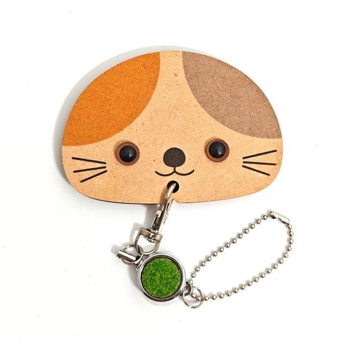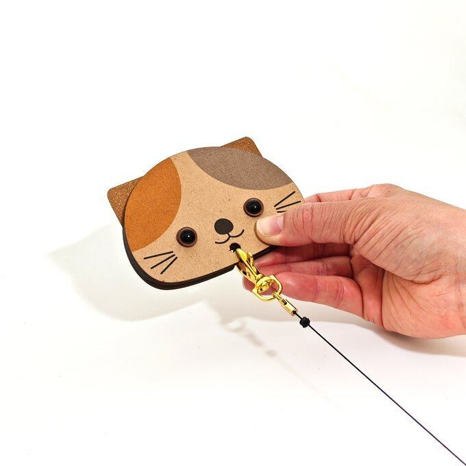 MDF(木材)で作られたナチュラルな風合いのデザインに、愛らしいねこのお顔をプラス。シンプルながらも、ひとつひとつ違う個性が光るアイテムです。