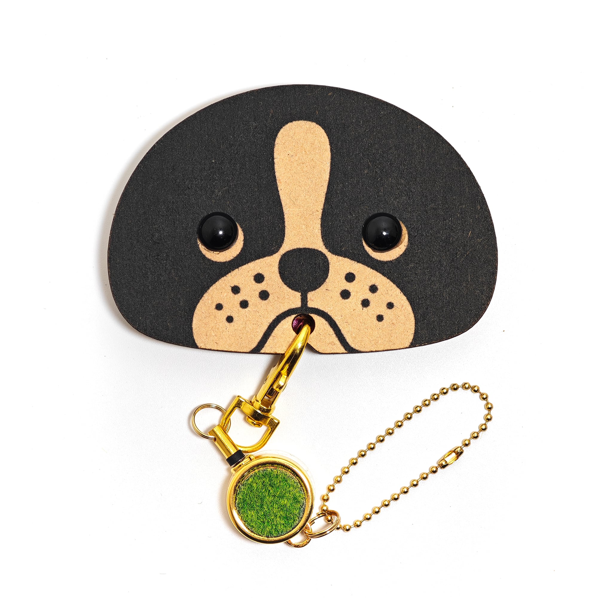 MDF(木材)で作られたナチュラルな風合いのデザインに、愛らしいいぬのお顔をプラス。シンプルながらも、ひとつひとつ違う個性が光るアイテムです。